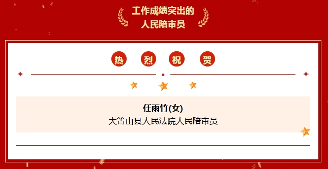 1月17日,最高人民法院、司法部联合召开全国人民陪审员工作会议,对200个集体和300名人民陪审员予以通报表扬。其中,大箐山县人民法院1名人民陪审员荣获表彰。